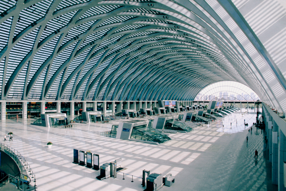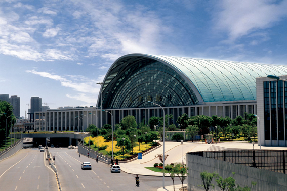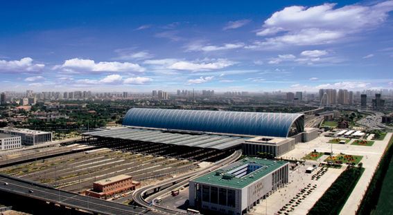 一、工程概况 该工程是配套京沪高速铁路建设的五大铁路客运枢纽之一,是连接京沪高速铁路、津保城际铁路及京津城际轨道交通和津秦客运专线的列车到发及中转的高速站,总规模为24台面26线,总建筑面积22.38万㎡,是集铁路、地铁、公路客运于一体的大型综合性交通枢纽。 该工程采用先进的房桥合一的建筑结构体系,地下层、站台层、高架层重叠复合的三层立体式布局,增强了站房的通透性。候车大厅高度达到47m,长度340m。站房正立面呈圆拱造型,高度57m。站房基础采用混凝土灌注桩基础,地下层为钢管混凝土柱与劲性混凝土梁组成的框架结构,高架层为钢管混凝土柱、平面钢桁架梁与桁架式楼承板组成的框架结构,屋盖采用联方网格型单层钢网壳,长度394.16m,跨度114m,不设变形缝,为国内跨度最大的单层筒壳结构。钢管柱主要管径为1500mm,壁厚45mm,主要钢材为GJC345C。型钢梁主要截面为1700×2600×30×45mm,混凝土等级为C40、C50。 工程于2009年12月1日开工建设,2011年6月28日竣工,总投资30.5亿元。