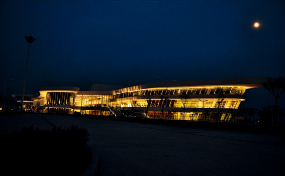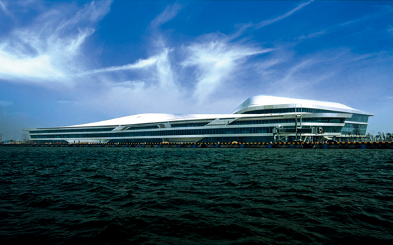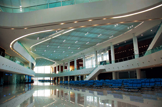一、工程概况 天津港国际邮轮码头(客运大厦)位于天津市滨海新区东疆港区内,距海边8m,年设计旅客通过50万人次。工程建筑面积6万㎡,结构为异型钢结构,外檐由双曲面GRC装饰板和Low-e中空玻璃幕墙组成,屋面为金属屋面加GRC装饰板屋面。局部地下一层,为设备用房;地上5层,为共享大厅、通关区、办公、商业、VIP观海餐厅等。工程造型似一艘行驶在大海上的邮轮,寓意海上丝绸之路。 建筑物檐口高度29m,最高点38.6m。基础为独立承台下的灌注桩基础。钢框架柱网12m×22m;由圆管柱、焊接H型钢梁、局部箱型梁以及部分桁架结构,YJ66-720/1.0 mm闭口形压型钢板复合型楼板体系组成。 工程于2009年3月15日开工建设,2010年9月28日竣工,总投资6.75亿元。