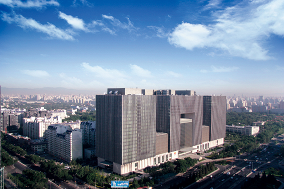 一、工程概况 该工程占地22520㎡,总建筑面积200838㎡,其中地上建筑面积144959㎡,地下建筑面积55879㎡。工程主体地上22层,地下4层,建筑檐高90m。 大厦包含四栋L型办公楼,形成南北两大集群,中间通过占地1750㎡、高53m的通高中庭连接,中庭采用张拉双索幕墙系统、柔性大跨度钢桁架屋面的恢弘设计,完成了40.5m大跨度联桥的空中拼装及外挑14m无拉杆雨棚的安装。建筑二层是贯穿南北、长248m的步行街,上方为30m高、搭载移动式采光顶的侧中庭。 首层主要功能为数据机房和银行;二层为会见厅和企业形象展厅;三层为集中会议层,档案及医务室;四层以上为标准办公区;裙房顶层八层和九层通高,设置了羽毛球、乒乓球等职工健身活动场所;地下一层为职工餐厅,地下二层为600人报告厅和汽车库,地下三层和地下四层为大厦设备机房,汽车库及辅助用房。 工程于2004年11月27日开工建设,2008年8月1日竣工,总投资18.25亿元。