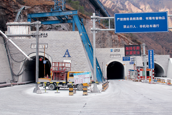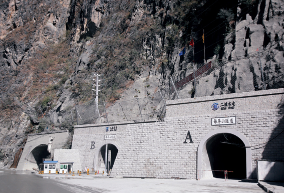 一、工程概况 该工程是沟通雅砻江东西段的重要通道,是锦屏水电枢纽(锦屏I、II级水电站)前期控制性工程,发挥交通、试验、科研等关键作用。工程采用上、下行分离式隧道(A、B线), A线全长17485.07m,B线全长17504.245m,其中埋深大于1500m的连续洞段长12.8km,占隧道全长的73.1%,最大埋深2375m。A、B线间隔35m,每500~600m设置一个横通道与紧急停车带。隧道纵断面呈“人”字坡,最大纵坡为2.5%。洞内设有两处平曲线,半径分别为1200m、500m。隧道断面采用城门洞形, A线正洞断面5.7m×5.764m~7.0m×7.483m,面积33.9~48.5㎡,B线正洞断面6.2m×6.7m~7.5m×8.126m,面积39.6~55.5 ㎡。设计行车速度40km/h。 隧道穿越锦屏山F6大断裂、F5、F25等多条断层,岩溶发育程度一般,以溶蚀管道为主。围岩完整性较好,以Ⅱ、Ⅲ类为主,少量Ⅳ、Ⅴ类,岩石单轴抗压强度60~120MPa。主要不良地质表现为隧道突涌水(砂)、高地应力岩爆(80MPa)和坍塌等。工程于2003年8月开工建设,2011年8月完工,总投资12.72亿元。