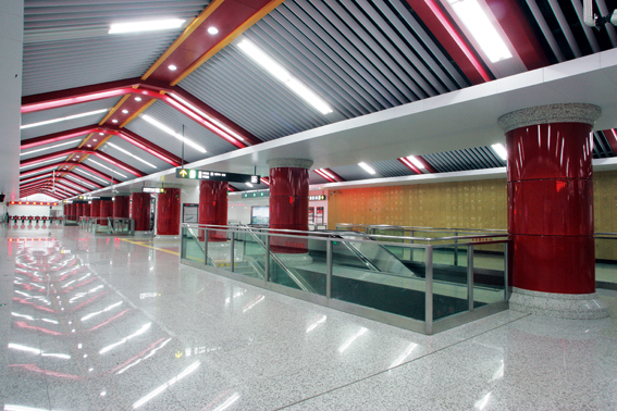 一、工程概况 沈阳地铁一号线工程西起沈阳经济技术开发区十三号街,东至大东区黎明广场,横贯沈阳市六个区,全长27.841km,总建筑面积56.0557万㎡,全部为地下线路。包括23个区间(含2个站后区间)、22座车站、两座主变电所、一座控制中心和一处车辆段与综合基地。其中明挖车站11座,盖挖(局部盖挖)法修建6座,暗挖(局部暗挖)法修建5座;浅埋暗挖区间9个,长8.3km,盾构区间9个,长10.6km,明挖区间5个,长5.1km。 全线铺设正线轨道57km、道岔29组、交叉渡线3组;铺设车辆段轨道14.8km、道岔45组、交叉渡线1组。全线挖掘土方103.6万m³,使用钢材25.5万t、混凝土131.8万m³。 工程于2005年11月18日开工建设,2010年8月30日竣工,总投资105.24亿元。