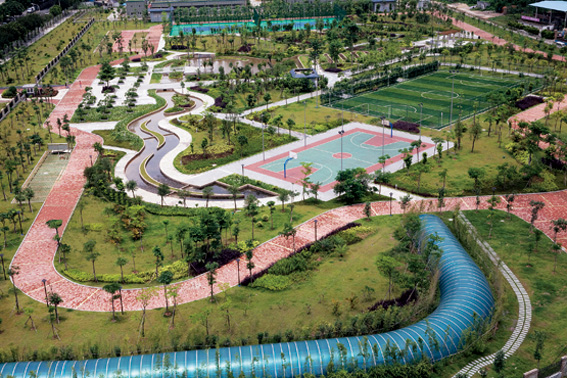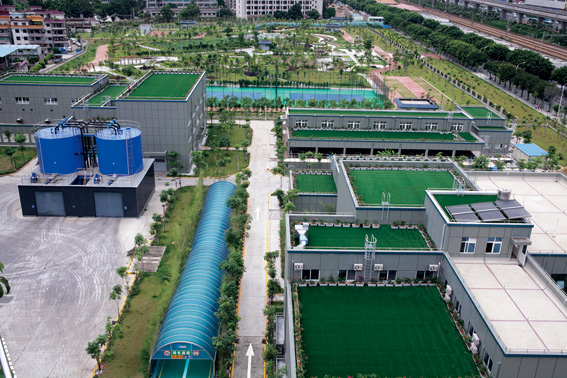 一、工程概况 该工程是全国首座20万m³/d全埋式污水处理厂,位于深圳市龙岗区布吉街道粤宝路西侧,占地面积5.95公顷。采用地下式污水厂方案,污水处理厂地面作为绿地休闲公园,公园式外观环境设计,功能分区明确,布局合理、紧凑,厂区内外道路交通设计合理,满足生产、生活、消防要求,并与上部休闲公园衔接协调,生产区与公园休闲区能截然分开管理。厂区环境以及休闲公园景观整体设计与周边地形(貌)既能衔接协调又能与粤宝路段街心公园、绿化带浑然一体,提供的休闲公园、绿色景观面积近4.35万㎡,厂区绿色景观面积近0.5万㎡。设计污水处理水质达到国家一级A排放标准。 工程主要包括:配水井及调流阀井、预处理地下构筑物、生化池、双层沉淀池、纤维滤池、反冲洗泵房及紫外线消毒池、脱水间、鼓风机房及1号变配电站、加氯及加药间、综合楼、厂区道路以及公园景观工程和配套的工艺设备、电气安装工程等。 工程于2009年3月28日开工建设,2011年6月26日竣工,总投资6.23亿元。