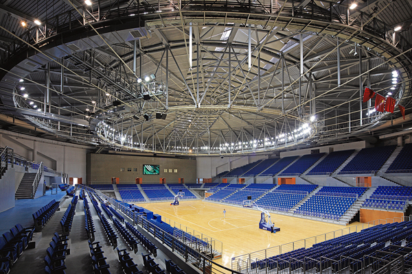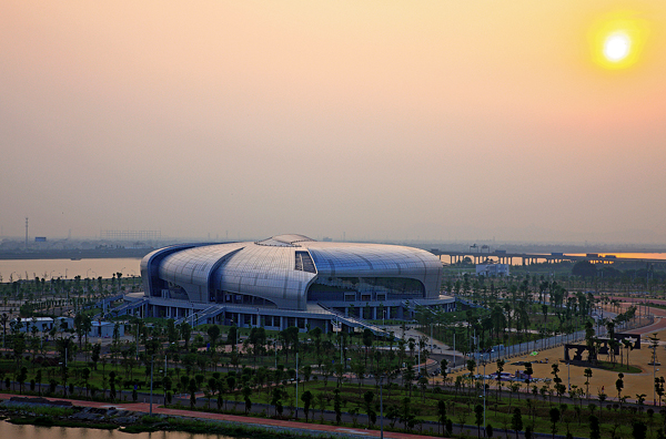一、工程概况 南沙体育馆位于广州市南沙区,是2010年第16届亚运会武术和卡巴迪项目的比赛场馆。占地面积1.75万㎡,建筑面积3.02万㎡,单层建筑,局部三层,建筑高度29m。赛后将作为南沙区举办体育、艺术表演和大型集会的综合性体育馆。 南沙体育馆结构采用混凝土框架及钢结构相组合的形式;屋盖结构采用了双层轮辐式空间张弦结构体系,屋盖外围9个多曲面钢结构单元,铝镁锰板围护及蜂窝铝板装饰相结合的屋面板中央设置了一个S型天窗。工程包括:地基与基础、主体结构工程(钢结构)、建筑装饰装修(金属、石材幕墙)、建筑屋面、建筑给排水、建筑电气、智能建筑、通风与空调、电梯安装、建筑节能共10个分部工程。 工程于2008年10月10日开工,2010年8月30日竣工,总投资6.97亿元。