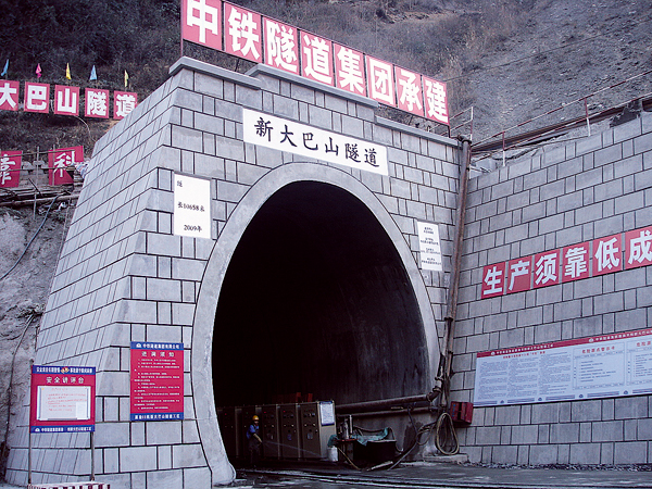 一、工程概况 新大巴山隧道穿越陕西及四川两省,进口位于陕西省镇巴县,出口位于四川省梨树乡,是襄渝铁路增建第二线全线最长、也是唯一的一座特长隧道,全长10658m。 本隧道为单线客货共线隧道,旅客列车设计行车速度140km/h,采用双块式无砟轨道结构。为克服既有线平面迂回展线,线路长、小半径曲线集中的缺点,采用提前起坡越岭的高桥、长隧方案,缩短线路16.4km,节省投资9100万元,缩短运行时间约8min。 本隧道存在涌水量大、岩溶强烈发育、高地应力引起的围岩变形、高瓦斯及采空区等不良工程地质现象,特别是岩溶涌水问题突出,最大预测涌水量高达215×104 m³/d,施工中实际涌水量高达109×104 m³/d。全隧设置贯通平导,平导长10622.7m,出口段设296.9m长无轨斜井一座。 工程总投资5.06亿元,于2005年8月26日开工建设,2009年10月15日完工。