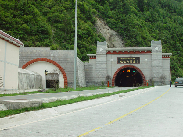 一、工程概况 鹧鸪山隧道地处四川省阿坝州境内理县与马尔康县交界处,是川藏公路北线的控制性工程。主隧道与平导洞间通过9条横通道相连,采用平导压入分段纵向式通风,隧道长4.448km,平导洞长4.446km,隧道轴线平均海拔3300m,按单洞双向两车道设计。隧道所处地段地质及地形条件复杂、气候环境条件恶劣、营运环境条件特殊,地应力高,岩爆、大变形、泥石流、滑坡、塌方、冰雪、浓雾、大风等地质和气象灾害频发,在历史上曾被视为“隧道工程的禁区”。 工程总投资5.4938亿元,于2001年4月开工建设,2004年9月完工。