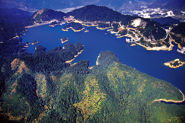 一、工程概况 广州抽水蓄能电站位于广州从化,是我国兴建的第一座大型抽水蓄能电站,也是当时世界最大的抽水蓄能水电站,总装机容量240万kW,共安装8台可逆式抽水蓄能机组,设计水头535m。电站分两期建设,一期工程装机120万kW,共装4台30万kW机组,成套机电设备从法国引进,建设期为1989年5月至1994年3月。二期工程装机120万kW,亦装4台30万kW机组,成套机电设备从德国引进,建设期为1994年9月至2000年6月。 电站枢纽建筑物由上、下水库、引水系统及地下厂房洞室群与输变电工程组成。其中上库坝为钢筋混凝土面板堆石坝,最大坝高68m,坝顶长318.52m、宽7m,左岸布置开敞式侧槽溢洪道;上库集雨面积5k㎡,正常蓄水位816.8m,相应库容为2408万m³。下库坝为碾压混凝土重力坝,坝体内部采用碾压混凝土,外部采用厚约1.5m的常态混凝土,大坝腹部设置一条贯穿左右岸的廊道;最大坝高43.5m,坝顶长153.12m、宽7m,在坝体中部原主河床部位布置有表孔溢洪道;下库集雨面积13k㎡,正常蓄水位287.4m,相应库容为2342万m³。 引水系统包括上、下库进出水口、引水隧洞、上游调压井、高压隧洞、尾水隧洞及尾水调压井等。一期工程引水隧洞总长3751m,洞径8.5~9m,设一个阻抗式调压井。下弯段后为“ト”形钢筋混凝土岔管,用4条直径8.5〜3.5m的支管进入厂房与水轮机连接。尾水隧洞洞径9m,长1521.013m,设2个尾水调压井。二期工程引水系统与一期工程结构和布置基本相近,引水隧洞总长4438.34m,洞径8.0~9m,设一个阻抗式调压井,岔管段主管直径8.0m渐变至3.5m。尾水洞长2190.34m,洞径9m,设1个尾水调压井;一期地下厂房长146.5m,宽21m,高44.54m;二期地下厂房长146.5m,宽21m,高47.64m。