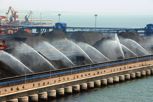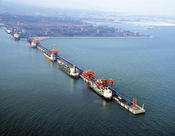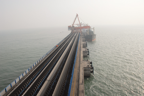 一、工程概况 秦皇岛港煤五期工程位于东港区煤三期东侧,是国家“十五”重点工程,设计年通过能力5000万t,工程概算44.89亿元(含设备制造),建筑、安装工程造价为13.92亿元。是目前世界上最大规模的煤炭输出码头工程建设项目。工程于2004年7月开工,2006年3月建成试运行,2007年3月通过国家验收。 水工工程新建1〜4号泊位4个(15万t级和10万t级泊位各1个,5万t级泊位2个),预留待泊泊位2个,护岸1个。造价5.49亿元。其中,码头工程为沉箱重力式结构,由106个重2348〜3325t方沉箱组成,码头长1187m;护岸直立段为沉箱重力式结构,由98个单重430t圆沉箱组成,岸线长998m;抛石斜坡堤段长243m。 翻车机房主体平面尺寸61.7m×49.18m,高21.34m;廊道为钢筋混凝土箱涵结构,分单、双孔廊道,廊道长213.41m。堆取料机基础及堆场工程包括堆料机基础4条、取料机基础3条和连锁块堆场7条,堆场面积52.2万㎡。疏浚工程包括煤四期扩容和煤五期港池疏浚及煤五期堆场吹回填造陆工程等,疏浚工程量1021万m³。安装工程包括卸车线和装船线,皮带机25条,转接塔15个。