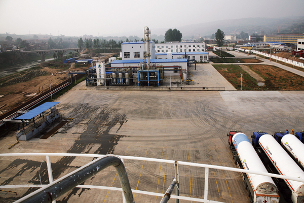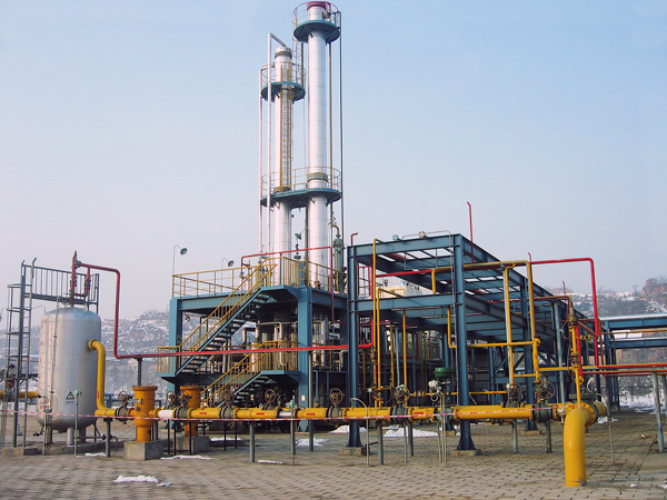 一、工程概况 煤层气的开发利用对于合理利用能源,减少温室气体排放,保护环境,减少煤矿瓦斯突出及爆炸事故,改善煤矿生产安全形势具有重要意义。煤层气液化项目作为煤层气新型利用方式,符合国家能源政策,对于科学合理利用煤层气具有较好的示范作用。 该项目于2008年4月1日开工建设,2009年1月联动试运行成功,2009年4月实现达产运行,2009年8月30日通过竣工验收,项目工程投资7780万元,总投资1.25亿元。工程包括煤层气液化装置及相关系统配套设施。生产装置包括原料气计量调压、压缩、净化、液化、制冷剂循环、再生气压缩、产品LNG 储运七个生产单元及辅助系统。 本项目工艺主要分净化、液化和储运三部分。其中,净化部分采用醇胺法(MDEA)脱CO2、分子筛脱水干燥的净化工艺;液化部分采用氮气循环膨胀制冷工艺。煤层气液化后送入LNG储罐,采用LNG罐车运至目标市场。 项目建成后,日处理煤层气15×104N m³,日生产液化天然气246 m³,每年减少煤层气排放5000×104 m³,转化成LNG后成为清洁能源,替代标准煤约6万t,减少CO2排放5900t、NOX排放5100t,SO2排放4440t,环保效能显著。