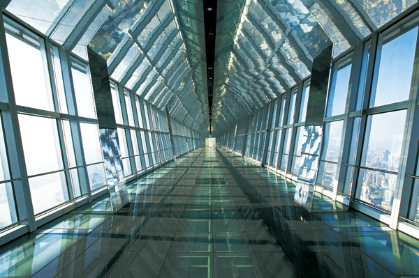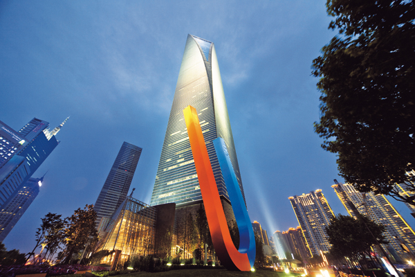 一、工程概况 上海环球金融中心位于上海市浦东金融贸易区,建筑面积381600㎡,建筑高度492m,建成时是国内最高的建筑。地下3层,地上101层,是以办公为主,集会议、酒店、观光等设施于一体的超高层智能化建筑。工程总投资52亿元,于2004年11月15日开工建设,2008年6月19日完成竣工验收。 本工程采用桩筏基础,地基稳定,主体结构安全。在工程主体结构中,内筒采用钢骨劲性混凝土结构,外筒是由巨型柱、巨型斜撑和带状桁架组成的三维巨型框架结构。外墙采用石材和单元式玻璃幕墙,室内地面采用OA地板(一种新型建筑材料)和石材地面,墙面采用涂料和石材饰面。完备的通风空调系统、具有五级保障功能的变配电系统、功能先进且齐备的楼宇自控系统、给水排水和消防系统,以及91部高速电梯(直梯)等最新的技术和装备,构筑了这幢安全、快捷、舒适、人性化的摩天大厦。