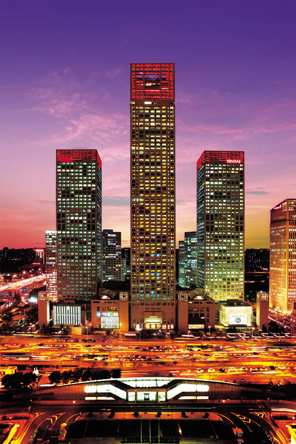 一、工程概况 北京银泰中心位于北京市东三环国贸桥西南角,地处中央商务区核心地带,是集酒店、公寓、写字楼为一体的现代化超高层建筑群。建筑群占地面积3.13 万m²,东西向长218.2m,南北向宽99m,总建筑面积约35万m²。地下共4层,单层建筑面积约2.2万m²,地上由“品”字形布置的三栋塔楼和裙楼组成。裙楼为5层混凝土结构商业用房;北塔楼为超五星级酒店及高级公寓,共63层,建筑高度249.9m,为全钢结构的塔楼建筑,是当时北京地区最高的建筑;东、西塔楼均为写字楼,共43层,建筑高度186m,为钢筋混凝土结构,是北京地区当时最高的钢筋混凝土建筑。本工程钢结构总用钢量达到3.2万t,塔楼基础埋深22.95m,裙楼基础埋深20.65m。 本工程基础为桩筏基础,基础桩采用桩侧、桩底后压浆技术,桩径1100mm,桩长为30m,单桩承载力达到2400t。工程于2003年5月4日开工建设,2009年3月5日完成竣工验收,工程总投资45.7亿元。