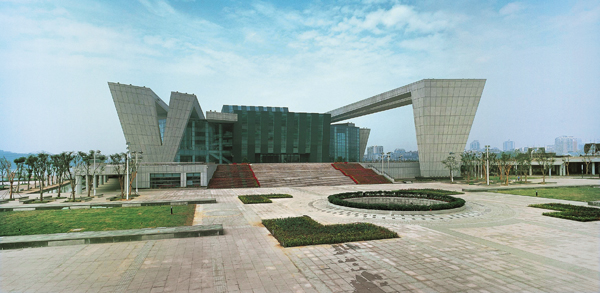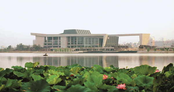 一、工程概况 琴台大剧院是中国第八届艺术节的主会场,建设规模仅次于国家大剧院,位于武汉市风景秀丽的月湖和汉江之间,两面临水,地下空间设计施工难度大,建筑外形像“琴键飞奔”,似“水袖飞舞”,演绎着“高山流水遇知音”的千古传说。工程总投资15.8亿元,于2001年5月10日开工建设,2007年9月28日完成竣工验收。 琴台大剧院由1800座的大剧院、400座的多功能厅、5个排练厅、公共服务空间等组成,总建筑面积65650㎡,地下1~6层不等(21m深),地上6层,结构安全等级为一级,100年结构设计使用年限。框架—剪力墙结构和106m跨大型钢结构,并采用仿真施工技术和多功能多系统的建筑智能化系统、全方位的给水排水、消防、自动化火灾报警系统等。外装修为三维清水混凝土板及单层索网式玻璃幕墙。