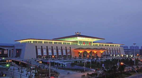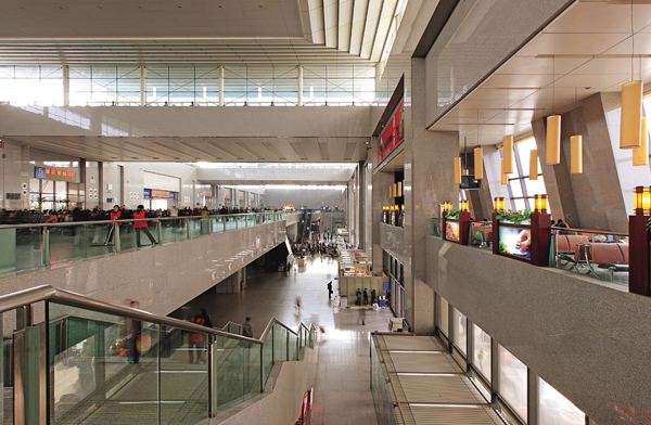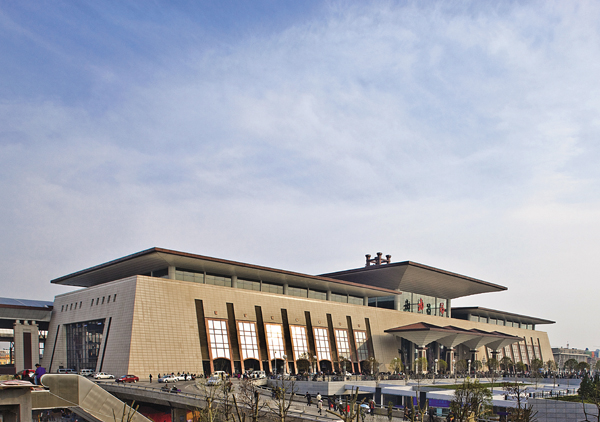 一、工程概况 武昌火车站改扩建工程是国内最大的运营线火车站改扩建工程,工程施工的同时要保证车站的正常运营及运营安全。工程于2006年6月28日开工建设,2007年9月30日通过初步竣工验收,2007年10月18日正式投入使用,工程总投资2.67亿元。 该工程是在武昌火车站原址上进行改扩建的,按旅客最高聚集人数8000人设计,分为东站房、西站房及站场三部分。西站房为主站房,建筑面积49900㎡,站房南北长258m,东西宽66m,檐口建筑高度22.8m,屋顶最大高度52.9m。站房为3层建筑(局部5层),基础形式为钻孔灌注桩+承台基础,主体结构主要为钢筋混凝土框架结构,二、三层候车大厅为大跨度空间(48m),采用钢柱头+槽型钢箱梁,这种结构形式在目前火车站站房工程中跨度最大。东站房建筑面积8222㎡。站场改造工程主要包括:新建人行天桥1座;新建无柱雨棚64028㎡;新建、改建3座地道;新建1座站台,加高4座站台,新建1股道,新建与改建铁道线路总长2.497km,新建与改建通信及信号、电力及牵引供电线路3.54km。整个站房设计理念以楚文化思想为主线,外立面通过提取楚台、干阑、编钟等元素,内部空间(主要为贵宾室)则通过不同主题,集中反映博大精深的楚文化。