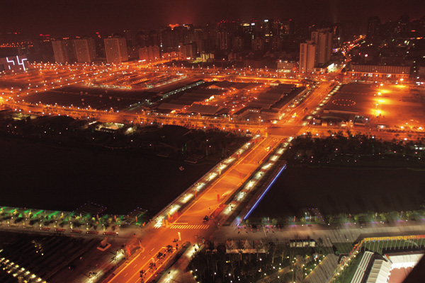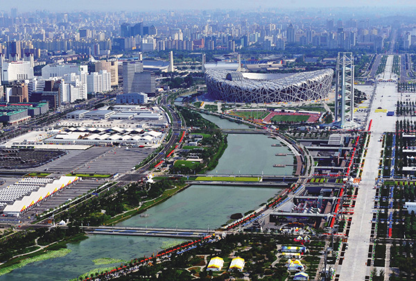 一、工程概况 奥林匹克公园位于北京南北中轴线的北端,是北京2008年奥运会的核心地区。中心区市政配套工程包括道路、桥梁、隧道、雨水、污水、再生水、照明、绿化等工程。共涉及31条道路,新建道路总长80.2km,新建立交桥14座,改建立交桥3座;新建隧道3条,总长约10km,包括地下立交桥4座;新建雨水、污水、再生水管线206.5km;新建雨水泵站12座。工程总投资62亿元,于2003年2月开工建设,2008年7月完成竣工验收。