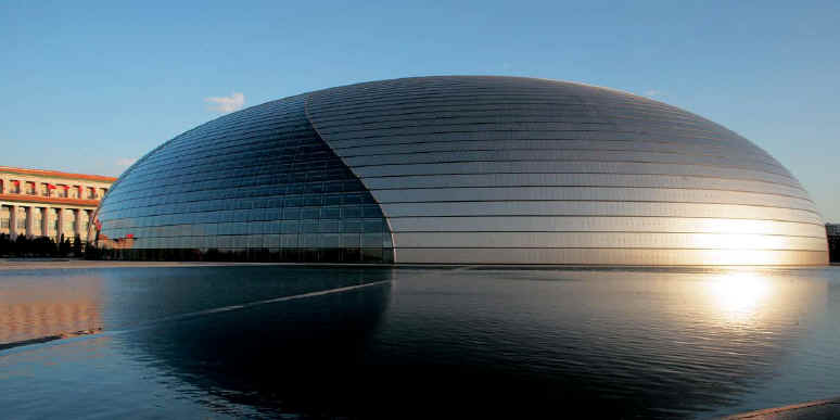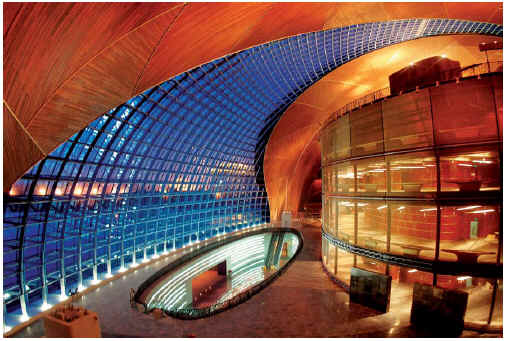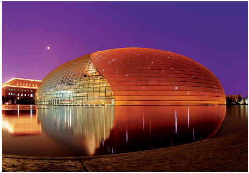 国家大剧院工程位于天安门地区,东临人民大会堂,北靠西长安街,地理位置特殊。工程建设单位为北京市、建设部、文化部等部门联合组成的国家大剧院工程业主委员会。工程于2001年12月13日正式开工,2007年9月25日竣工。工程占地面积11.89万m2,总建筑面积21.94万m2,由北侧201区地下停车场、南侧203区地下设备及办公用房及202区中心主体建筑三部分组成。 中心主体建筑由建筑外部围护结构和内部活动区域,可谓展现大剧院无限魅力的“第五空间”,还设有剧院配套设施。建筑外部围护结构为钢结构椭球壳体,平面投影椭圆东西向长轴长度212.20m,南北向短轴长度143.64m。歌剧院设有观众席位2416个,音乐厅设有观众席位2017个,戏剧场设有观众席位1040个。 国家大剧院工程202区中心主体建筑占地面积25500m2,总建筑面积15.72万m2,外围护墙体周长达599m,为超大超宽结构,工程结构形式为框架剪力墙结构,大部分基础埋深-26.0m,歌剧院台仓基础埋深-32.5m,戏剧院台仓基础埋深-29.1m,音乐厅基础埋深-27.0m,各种通道和入口也均设在地下。结构内曲线构件多,内、外墙体由多个曲面方程定位,如外围护墙为超级椭圆曲面,内部戏剧院、歌剧院、音乐厅隔墙及楼梯为圆弧曲面,独特的曲面构造为国内罕见。箱形基础,钢管混凝土柱、劲性柱和大截面梁等形成了大跨度、高凌空的空间。 国家大剧院203区位于大剧院南侧,建筑面积35000m²,全为地下结构。结构形式为框架剪力墙结构,基础的外墙、底板、屋面为刚性防水混凝土。最大基坑深度为-18.00m。201区是大剧院北侧地下附属结构,建筑面积50000m²,其结构最深标高为-16.38m,其他为-14.01m,结构顶标高为-0.17m。南北向长约为192m,东西向长约为226m。国家大剧院景观水池内周长615m,外周长930m,面积35000m2,储水量18000m3。 二、新技术应用与科技创新 (1)超深基坑支护施工技术:整个建筑物结构大部分处于地下,基坑较深。最终确定采用降水+护坡桩+地下连续墙支护及中心台仓采用减压降水加薄壁连续墙隔水帷幕基坑支护方案,综合采用疏干、抽渗水、隔水和减压等多种降水措施,突破了传统基坑支护和地下水控制模式。此方案设计突破性地采用了多种支护形式联合和动态控制地下水技术,极大地节约了工程成本,保证了基坑和邻近重要建筑物的安全,并且大大减少了地下水的抽水量。 (2)壳体钢结构施工安装技术:钢结构壳体为一超大空间结构,为非正椭圆球体,施工中平面、空间定位测量的难度颇大。壳体的主要结构体——梁架(尤其是短轴梁架,侧向厚度仅为60mm)平面外刚度极差,梁架呈中心对称辐射状布置,因而每种同类构件最多只有四件,对构件的制作放样及安装顺序要求颇高。通过严谨、科学的技术准备和攻关,根据工程实际,制定了以600t履带吊、600t·m塔吊等大型起重机为主的“构件分段跨外综合对称安装”的总体技术路线,并通过采取相关技术措施高效地解决了施工过程中的重大技术难题。 (3)大型壳体钛金属屋面变形控制与安装施工技术:壳体屋面由钛金属复合装饰板部分和玻璃幕部分组成。按照“屋面钛板、玻璃幕墙的深化设计;钛板幕墙的安装工艺研究;钛板幕墙系统验收标准的研究”的技术路线组织攻关,克服巨大壳体屋面的变形控制难等诸多技术问题,最终圆满完成了特殊壳体屋面的设计和安装任务。创造性地采用1mm铝镁锰合金刚性防水板(Kalzip),兼具防水、隔声、环保等多种功能。在国内首次采用的钛金属复合板、刚性防水板,特编制《国家大剧院结构覆盖外壳工程钛金属复合装饰板和刚性防水板施工质量验收标准》。钛合金表面经特殊处理后对轻微划伤能进行自我修复。玻璃幕采用中空充氩、夹胶、超白半钢化玻璃(12+15A+8+1.52PVB+8),节能降耗作用明显。玻璃表面的纳米涂层能形成自我清理的薄膜,可氧化分解部分微小尘土,在一定大的雨量下可自我清洗。 (4)大型钢梁高空滑移施工技术:引进FRACO液压动力升降平台,并与之合作对该设备进行技术改造作为高空承载平台,是该种施工设备在国内的第一次应用。通过FRACO液压动力升降平台的创新技术改造,实现了大跨度重型钢梁滑移就位。创造性地采用型钢梁吊挂平台及模架方案成功地解决了大跨度超高凌空钢筋混凝土结构的施工技术难题。 (5)超长椭圆组合钢筋混凝土梁和大面积混凝土箱形底板施工裂缝控制技术有效地解决了变形控制难的问题,为今后类似工程的施工提供了施工依据。