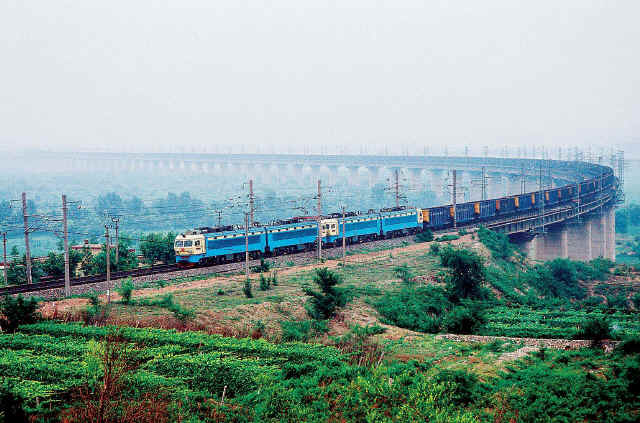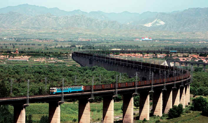 大秦铁路2亿吨扩能综合工程是国务院批准的《中长期铁路网规划》中急需实施的重点项目之一,主要工程包括:11个车站的站场技术改造,延长既有车站到发线长度,对不能适应2亿吨运能要求的车站进行扩建增加股道;通信信号改造,对大秦线现有通信系统进行改造,建立铁路综合数字移动系统(GSM—R),区间地面信号设备采用ZPW—2000A轨道电路双线双方向四显示自动闭塞系统;全线电气化配套改造;机务车辆配套改造等工程。扩能改造后铁路主要技术标准:线路等级:Ⅰ级;正线数目:双线;限制坡度:上行(重车方向)4‰,下行(轻车方向)12‰;最小曲线半径:一般800m,困难400m;牵引种类:电力;机车类型:SS4G、和谐1;牵引质量:20000t;部分列车10000t;到发线有效长度:2800m;闭塞类型:自动闭塞。远景输送能力为40015万吨/年。 大秦铁路西起北同蒲线的韩家岭车站,东至秦皇岛柳村南站Ⅱ场,纵贯山西、河北两省,北京、天津两市,全长653公里。是我国铁路第一条开行重载单元列车的煤炭运输专线,主要承担晋北地区和内蒙古西部煤炭外运任务,目前煤炭运量占全国铁路煤运总量的约1/4,担负着全国六大电网、五大发电公司、380多家主要电厂、十大钢铁公司和6000多家工矿企业的生产用煤和出口煤炭运输任务,用户群辐射到15个国家和地区以及26个省、市、自治区,对我国经济发展举足轻重。大秦铁路原设计输送能力为每年1亿吨。2002年,完成运量1.034亿吨,为了落实国家能源发展战略、加快“三西”地区煤炭外运、构建大通道煤运网络,2004年,对大秦铁路进行2亿吨扩能改造,通过扩能改造,2005年工程竣工当年运量即达2亿吨,并以每年5000万吨的运量递增,2007年运量超过了3亿吨,大大缓解了我国煤电油运紧张的局面。2008年年初南方遭遇冰雪灾害,铁路大力组织电煤抢运,其中大秦铁路功不可没,日均煤运量达到百万吨以上,为全国抗灾救灾斗争提供了强有力的保障,充分显示了铁路煤运在我国国民经济中之重要地位。 二、新技术应用与科技创新 大秦铁路扩能改造工程,采用列车牵引质量达2万吨,行车密度及线路通过能力居世界重载铁路之首,在我国铁路史上开创了大秦模式,是现代化重载铁路的示范性工程,也是我国既有铁路改造的样板工程。 (1)国际上首次借助GSM-R平台和热备机车通信模块,实现了2万吨重载列车的机车同步操控,成功地开行了2万吨重载组合列车。 (2)自主研发的ZPM·XKD型大电流空心线圈居国际领先水平,系统地解决了通信信号系统适应大牵引电流和抗大不平衡牵引电流能力的技术难题。 (3)在技术作业站采用75kg/m钢轨12号可动心道岔和75kg/m钢轨12号固定辙叉5.3m间距交叉渡线技术属国内首次采用;采用到发线有效长度2800m,“2重(或空)夹1机走”线束的平面布置形式和长达1500km的循环机车交路,优化的生产力布局,提高了行车密度,确保2万吨重载列车的开行。 (4)站内轨道电路采用ZPW-2000A站内一体化轨道电路,是国内第一次在既有干线上使用。完善和提高了机车信号主体化地面传输系统在站内的安全等级,填补了国内空白。该工程在重载铁路扩能改造方面达到了国际领先水平,在节能降耗方面效果显著,经济和社会效益显著,对今后类似工程的设计和施工有示范意义。 三、工程获奖