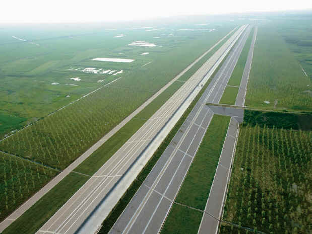 临淮岗洪水控制工程地处淮河干流中游,主体工程位于安徽省霍邱、颍上、阜南三县,控制流域面积4.22万平方公里,按100年一遇洪水标准设计,相应滞洪库容85.6亿立方米,1000年一遇洪水标准校核,相应滞洪库容121.3亿立方米。为Ⅰ等大(1)型工程。 主体工程主要建设内容包括:拓宽上下游引河;对现有主坝、南北副坝加高加固并延伸;加固改造已建城西湖船闸、49孔浅孔闸;新建深孔闸、姜唐湖进洪闸及临淮岗船闸。主坝及南北副坝均为均质土坝,主坝长8.54公里,最大坝高21.0米,南北副坝总长69公里,最大坝高12.0米;浅孔闸为开敞式闸室结构,单孔净宽9.8米,49孔;姜唐湖进洪闸为开敞式闸室结构,单孔净宽10.0米,14孔;深孔闸为胸墙式闸室结构,单孔净宽8.0米,12孔;新建临淮岗船闸标准为500吨级;加固城西湖船闸为100吨级;引河底宽160米,全长14.39公里。 临淮岗洪水控制工程是控制淮河干流中游洪水的战略性骨干工程,国家“十五”重点工程,其主要任务是防御大洪水,使淮河中游正阳关以下主要防洪保护区的防洪标准由不足50年一遇提高到100年一遇,为京沪铁路、京九铁路、多条高速公路、煤矿、电厂、城市及1000多万人口提供安全保障。工程建成后,遇100年一遇洪水,可减少淹没面积为1290平方公里,一次性防洪减灾效益为306亿元,多年平均减灾效益为2.8亿元。2003年及2007年淮河流域发生特大洪水,工程均运行正常,经受了大洪水的考验,发挥了巨大的防洪减灾效益。 2001年5月,水利部以《关于临淮岗洪水控制工程初步设计报告的批复》(水总[2001]187号)批复了该工程初步设计。工程于2001年12月开工建设,先后完成了主体工程竣工初步验收、各专项验收及工程安全鉴定工作,并于2007年6月完成工程竣工验收。 二、新技术应用与科技创新 (1)工程总体设计充分利用原建工程,根据各建筑物不同功能要求,通过水工模型试验,创新了工程建设方案,优化了总体布置,不仅大大改善了工程运行条件,保证工程运行安全,而且满足了淮河和城西湖通航需求,同时节约了大量土地和建筑材料,降低了工程造价。工程深孔闸结构采用整体式加设水平中隔板闸室结构,改隔板为隔梁,并将隔梁布置升高,完全消除了泄流时出现在中隔板下的气泡及可能引起的闸室振动,降低了闸孔阻力,提高过流能力约5%。 (2)为节约材料、保护环境,工程建设中优化设计,利用原建49孔浅孔闸,按现行规范校核检测,确定对老闸底板、闸墩采用外包薄壁砼进行加固;充分利用工程运用特点,选用双扉闸门,优化结构设计,节约了能耗。 (3)研发了“开孔垂直联锁式预制混凝土砌块”,砌块间三维空间相互咬合,替代传统的砌石护坡,减少了风浪产生的负压,提高了抗风浪作用,既解决了长吹程、高风浪条件下的主坝坡面防护,又节约了石料用量和工程投资,同时保护了环境。 (4)主坝淮北段坝基下3米左右有一层厚达2~4米的中粉质壤土夹淤质软土,施工中采用电解质式位移监测技术,取得了精度高达0.01毫米的连续的坝基垂直位移变化曲线,创新了大坝内部位移监测技术,提高了大坝内部变形的监测精度。可以随时监测内部变形,科学合理地控制填筑速度,保证了坝体填筑安全和施工进度。 (5)工程老坝体膨胀土、软基处理、基坑降水、施工截流、引河开挖、船闸浮筒式检修门等都进行优化设计,取得了节约和保护的显著成效。该工程经2007年大洪水考验,为防洪减灾发挥了重要作用。 三、工程获奖