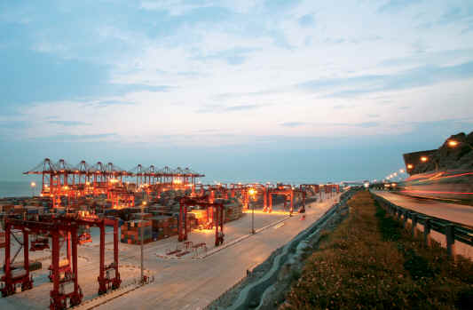 洋山深水港区位于杭州湾口,远离大陆30多公里,是世界上第一座远离大陆的外海岛礁超大型集装箱枢纽港,规划岸线长10余公里,布置30多个集装箱泊位,设计年吞吐能力1500万TEU以上。二期工程位于洋山深水港区规划岸线中部(一期工程西侧),工程于2005年6月开工,2006年12月底建成投产,2007年9月通过国家验收。 工程建设4个7~10万吨级集装箱泊位(兼顾15万吨集装箱船靠泊),港区陆域总面积88.83万m2,配置12台集装箱装卸桥(10台为双起升双40英尺)和37台轮胎式龙门起重机及相应配套设施,设计年吞吐量210万TEU。工程概算57.013亿元,竣工决算56.4亿元。 水工码头长1400m,宽37m,码头面标高+8.10m,为高桩梁板式结构(采用5m跨简支板与驳岸承台结构相连)。码头基桩采用Ф1200mm的钢管桩和Ф2300mm的嵌岩桩(基岩裸露区),上部结构采用现浇高性能混凝土桩帽节点和安装预制预应力纵梁、横梁、轨道梁、边梁和叠合板形式。码头区域软弱土层深厚,地基加固采用塑料排水板、砂桩,并以水抛中粗砂以及水抛石碴护底同时形成透水层。接岸结构采用斜顶桩板桩墙承台结构,承台结构底板厚度为3.0~2.5m,每个分段海侧布置4Ф1700mm@5.0m,海侧布置斜度为3.5:1、Ф1700~Ф2000mm的钢管斜顶桩,以抵抗后方水平土压力;中间采用Ф1700mm的密排钢管板桩;后方创新采用1排或2排Ф1200mm的钢管支承桩,以承受高回填土引起的负摩擦;承台后方采用深水混合倒滤层,有效防止漏沙并减少后方回填土对承台的压力;棱体下软土层采用大直径砂桩加固,减小下卧软土层测向变形对承台结构的影响。 水工码头设计使用年限50年以上。为抵御海水对码头构件的腐蚀破坏,除桩芯、现浇面层、护轮坎外,主体结构均采用高性能混凝土。预制构件表面采用硅烷浸渍技术对其进行防腐处理,以增加结构的耐久性;钢管桩采用壁厚增加、防腐涂层、阴极防护等综合防护工艺,确保使用寿命。 二、新技术应用与科技创新 (1)洋山深水港区二期工程创新技术是二期工程实践中形成的具有自主知识产权的核心技术,其中总平面布置开创了我国外海岛礁建港的新思路。根据二期港区陆域受山体限制相对较小、国际上首次规模应用双起升、双40英尺集装箱装卸桥的实际,结合一、二期港区独立或统一运行的可能性,提出统筹布置一、二期工程总平面。 (2)形成外海深水区大直径水下砂桩软土地基加固成套技术:为尽量减少因高回填土作用使软土地基变形进而作用到接岸结构,对接岸结构区域(斜顶桩板桩承台的后方、减压抛石棱体的下方)软弱地基进行砂桩加固。外海深水实施大直径砂桩在国内尚属首次,设备能力及其可靠性、灌砂工艺是施工的关键技术。通过不同施工工法成桩试验,成功确定了成桩工艺和参数;成功改造、新建了5艘架高50~60m的多管砂桩船,改进了砂桩船砂桩管头和灌砂系统;针对外海施工工况,编制了《水下砂桩质量检验评定标准(试行)》等标准,形成了外海深水大直径砂桩地基加固成套技术。 (3)自主研发了全工况水下阳极块焊接摄像检测系统:开发的新型水下摄像系统满足了包括浑水期在内的全工况下的摄像检测,且图像清晰,也适应了传统阳极焊脚和新型阳极焊脚水下焊接的摄像检测要求,填补了行业空白。 (4)自主研发了生产管理信息系统,满足了双起升双40英尺集装箱装卸桥首次规模应用的生产需求。 (5)首次规模采用新型集装箱装卸桥,大大提高装卸效率:二期工程配置12台集装箱装卸桥,其中10台为双起升双40英尺集装箱装卸桥,为国际上首个规模化使用双起升双40英尺集装箱装卸桥的港口,大大提高了港区装卸效率。 (6)接岸结构采用斜顶桩板桩墙承台结构,并进行了多方面优化:提高了板桩承台的底标高,减少了承台施工受水位的影响,同时使承台下抛石棱体的施工较一期工程容易;充分利用板桩承台上部结构空间,设置了综合管沟;斜顶桩板桩承台后方优化设置了简支跨,既可以适应差异沉降,又有效降低墙后土压力。 (7)集成应用地基加固技术,有效控制了不同地基条件下的差异沉降难题;改进了深水铺排、袋装砂堤心结构施工技术;采用了新型抗氯盐硅酸盐水泥应用技术。 三、工程获奖 上海市建设工程优质结构奖 四、获奖单位