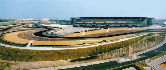 一、工程概况 上海国际赛车场作为上海国际汽车城的一部分,是为举办世界顶级汽车赛事—F1世界锦标赛而兴建的大型体育建筑设施。 赛车场位于上海嘉定区境内,规划用地5.3km2,其中一期工程用地2.5km2,其主要设施包括:全长约5.4km的F1大奖赛赛道,能容纳约20万人的主、副及临时看台,横跨赛车跑道的大跨度空中建筑物,兼作空中建筑物支撑的多层比赛控制塔楼,行政管理塔楼等多个单体工程。总建筑面积为16.5万m2。 其中F1赛道呈“上”字型,其线形很好地满足了赛车比赛的需要,而且还十分独特地体现了中国特色、上海特色。赛道设计时速高达327km/h,平整度要求为2mm/4m,最大高差为7.5m,最大纵坡为8%,弯道最小半径8m。 国际汽车联合会在对上海国际赛车场进行全面验收后,认为上海国际赛车场的设计和建造都已经达到世界一流水准,并授予上海国际赛车场国际1级赛道证书。 2004年建成以后已经成功举办了全国汽车锦标赛和F1中国大奖赛。2005年除了这二项比赛外,还举办了世界顶尖的MotoGP摩托车大奖赛、澳大利亚V8等众多比赛。 二、新技术应用与科技创新 (1)创新性地攻克了在软土地基上建造赛道面临的路基不均匀沉降等国际性的技术难题,开发了大面积二灰、石灰土路拌法施工工艺(已申请发明专利),软土地基上大面积不规则高填方复杂造型采用超载预压和路堤桩等综合处理技术(已申请发明专利);建立了以超小半径弯道摊铺为代表的F1赛道沥青混凝土施工成套技术和施工工艺(已申请发明专利)。 (2)国内率先采用了有利于抵抗道路不均匀沉降变形的全柔性路面结构,在我国首次运用混合料分层磨耗技术进行沥青混凝土防滑面层设计施工技术(已申请发明专利)。 (3)开发了满足F1赛道沥青混凝土面层高标准要求的“东海牌”F1赛道专用SBS改性沥青(已申请发明专利)。 (4)解决了赛车场主建筑结构设计与施工中超大跨度重型钢结构梭型桁架、减震支座及新型索膜结构应用技术等关键技术难题,其中清水混凝土看台板施工方法申请了发明专利。 (5)建立了F1赛道地基处理和路基填筑的压实度标准,首次将变形模量标准引入到我国路基施工质量控制中来;制定了我国首部F1赛道沥青混凝土施工验收技术标准。 (6)首次在国内实现了F1比赛信息化系统的集成与应用。 赛道施工全部采用国产材料和国内施工技术,特别是沥青混凝土面层摊铺中,一次成功,没有返工和任何质量问题,这在国际F1赛道施工中前所未有。 三、获奖单位 上海国际赛车场有限公司 上海建工(集团)总公司 上海建筑设计研究院有限公司 上海城建(集团)公司 中国石化镇海炼油化工股份有限公司 |