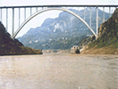 一、工程概况 万县长江大桥是国家主干线上海至成都公路在重庆万州跨越长江的一座特大公路桥梁。大桥主孔跨径420M,全长856M,桥面全宽24M,桥高147M(枯水位以上)。大桥于1994年5月开工、1997年6月竣工,是当时世界上跨径和规模最大的混凝土拱桥。 主拱轴线为悬链线.矢跨比1/5,拱轴系数1.6。拱圈为单箱三室截面,箱高7M,宽16M,拱箱标准段顶、底板各厚O.4M,腹板厚O.3M,拱脚段顶、底板各厚O.8M,腹板厚O.6M。拱上及引桥为同一孔跨贯通布置,共27孔30.668M预应力T型梁,桥面连续。 拱圈采用钢管混凝土劲性骨架外包C60级高强混凝土复台结构。其中钢管混凝土劲性骨架先期是施工构架,在拱图形成后它就成为拱国内的劲性钢筋。 铜管混凝土劲性骨架由五片钢管衍架组成空间衍架,弦杆采用Ф402x16钢管,腹杆和连接系为角钢组合杆。空铜管骨架分36节段整体在工厂制造,段重61T.段长13M,段间采用法兰盘螺栓接头节段在工地以缆索吊机起吊运输,两岸斜拉扣挂悬拼,跨中合拢,成拱后压注高强混凝土形成钢管混凝土劲性骨架。 二、新技术应用与科技创新 1.在设计计算方法方面:根据有限元基本原理,提出了拱固强度验算的非线性综合分析法,方法的正确性通过1/5节段模型试验所验证;根据有限元基本原理,建立了施工过程非线性稳定性分析方法,并通过1/10全桥模型试验验证;根据劲性骨架混凝土拱桥的特点,提出了两级控制的施工控制方法,使大跨混凝土拱桥的施工控制技术走向科学化通过研究变截面空心薄壁杆几何特性、力学特性的变化规律,提出了变截面空心薄壁高立柱稳定计算的解析公式。 2.在施工工艺技术方面:根据四川省率先修建钢管混凝土拱桥的实践经验,提出了钢管混凝土劲性骨架的成拱方法,发展了大跨混凝土拱桥建造技术;发展了大吨位、多节段缆索吊装、扣挂悬拼技术;发展了桥用高强混凝土配制、生产、输送(长距离、大落差、双泵接力)工艺技术;根据传统的(拱圈混凝土浇注)多点法.提出了"六工作面"对称同步浇注法.发展了拱圈混凝土的均衡浇注技术。 3.在新材料、新结构措施应用方面:在桥梁领域首次采用钢管混凝土、c60高强混凝土为拱圈材料,并形成新的复合结构,为桥用高强材料和复合结构提供了新经验;针对大桥两岸地质特点,提出了组合式钢架桥台的创新设计;采用系列技术措施,解决大跨混凝土拱桥上构造轻型化问题;针对万州地区酸雨严重的大气环境,采用了混凝土表面防护技术。 三、主要获奖单位 四川省交通厅公路规划勘察设计研究院 四川省公路桥梁建设集团有限公司 重庆交通学院 西南交通大学 |