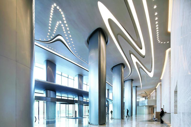 7. 采用了BIM技术的室内无吊顶机电管线排布技术,实现设备管线的精确排布,在最大限度提高室内净高的同时,减少吊顶材料消耗,在大型商务办公建筑中有很好示范作用。
