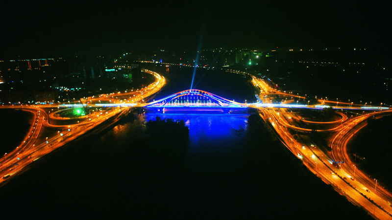 兰州深安黄河大桥为主跨156m的下承式蝶形钢拱叠合梁结构。大桥位于兰州市西固区与安宁区之间,横跨黄河,主线与黄河南岸的南滨河路、黄河北岸的北滨河路互通相交,立交形式为“2个半定向+2个苜蓿叶”的两层完全互通立交,各向匝道共计16条。