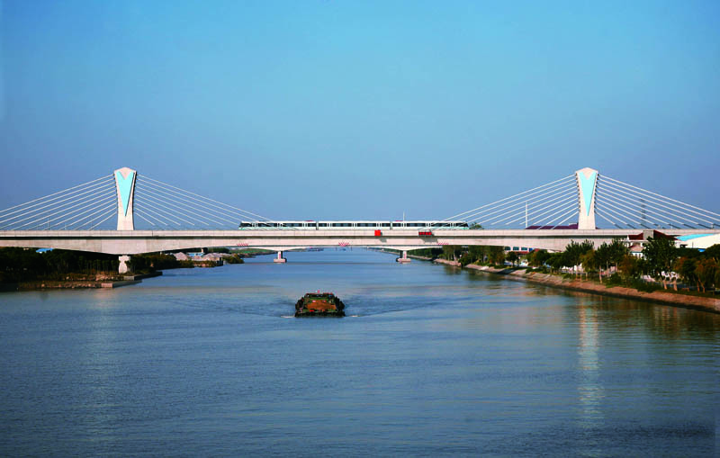 国内现行规范只适用于时速100km以下的轨道交通,本工程汲取以往地铁工程建设经验,以最高时速120km的轨道交通设计、建设及装备开发作为攻关目标,针对长距离、大运能、高速度带来的运营模式、授流方式、车辆研制、土建实施等重大技术难题,在新系统、新技术、新工艺、新设备等方面开展研究并形成系列创新成果,体现了我国同期轨道交通建设的先进水平。