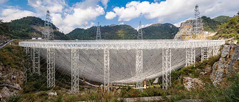 3、研制了500MPa超高应力幅及毫米级精度的结构钢索,发明了多种大跨度、高精度施工工法,突破了现场极其苛刻的复杂场地限制,实现了建设完成跨度极大、精度极高的望远镜主体结构,是建筑工程史上一大创举。