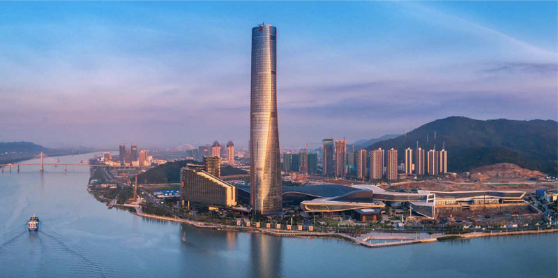 该项目占地面积23.3万m2,总建筑面积70万m2,由6个单体建筑组成,共用2层地下室,建筑面积41万m2。工程外观新颖、结构合理、功能丰富,应用绿色建造技术,是国内一次性建成且拥有最大规模地下空间的海滨会展商务城市综合体,是珠江西岸首个中国建筑新地标,是粤港澳大湾区合作重要平台和澳门产业多元服务基地。