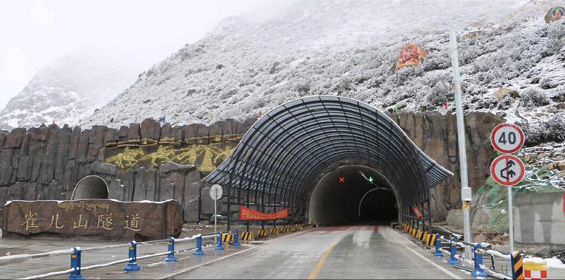 该工程是国家级重点工程,位于四川省甘孜州德格县境内,是目前世界上海拔超过4300m单洞最长的公路隧道。洞口海拔4373m,全长7079m,平行导洞长7108m,最大埋深700m。