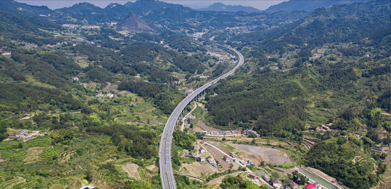 项目位于大别山腹地,群峰逶迤、林壑幽深、河流深切,路线布设空间狭小。地质情况以花岗片麻岩为主,粉砂岩、崩塌、滑坡等不良地质并存,中碱性集料、天然河砂匮乏。