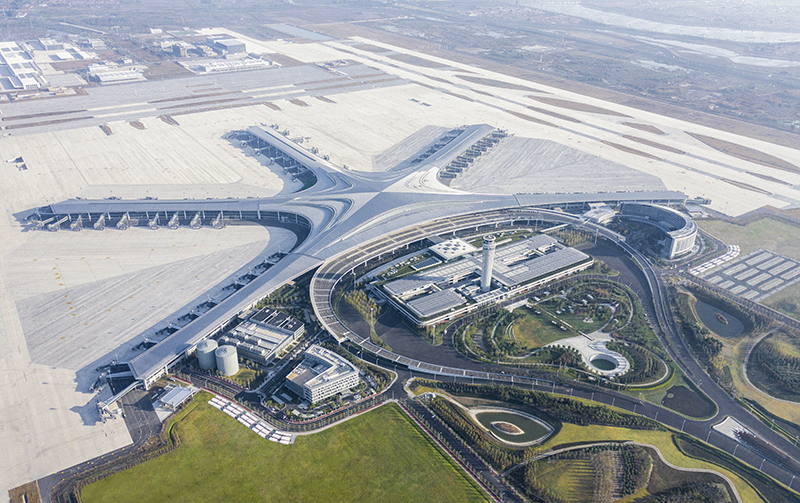 1.国内原创设计首个单体集中式五指廊构型“海星”航站楼。