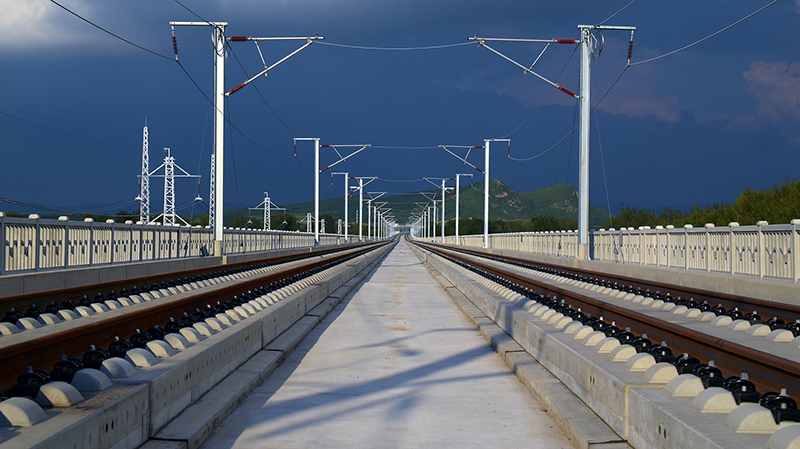3.首创全线采用混凝土新型基床结构形式,解决了寒冷地区路基冻胀问题。攻克了寒冷地区岔区长寿命道床混凝土的制备和施工技术,解决了大体积混凝土开裂、粉化、剥落、低坍落度难以泵送的难题。首次在高速铁路无砟轨道段落采用32m槽型梁、首创“8+4m”折角式新型声屏障结构,降噪效果及景观效果良好。第一次大规模铺设60N廓形钢轨,改善了钢轨与车轮踏面匹配程度,有利于减少钢轨磨耗,延长钢轨使用寿命。