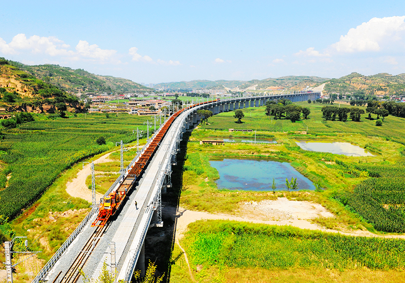 山西中南部铁路通道(瓦日铁路),西起“小延安”兴县瓦塘镇,东至山东省日照市日照港,横贯山西、河南、山东三省13市47县,全长1269.836km,正线路基605.5km,桥梁286.4km/467座,隧道378.1km/197座,新建车站44座(1座预留站),是我国首条自主设计和建造,也是世界上首条一次建成1000km以上的30t轴重双线高标准电气化重载铁路。