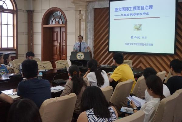 下午,张水波教授报告的题目是“重大国际工程项目治理——工程实践与学术研究”,东南大学博士生导师邓小鹏副教授主持了讲座。张教授的报告分为三个部分:目前重大国际工程项目面临的现实问题、相关理论与研究进展、需要研究的相关问题。张教授首先从资源安全与和持续发展问题、工程国际化方向的转变、大型工程项目带来的问题、实践问题的理论化等方面介绍了目前国际工程所面临的现实问题;然后,解释了治理理论与研究进展,提到从“项目管理”到“项目治理”是一个新的研究范式,需要借鉴当前项目治理最新研究成果来建立、发展、完善工程项目治理理论;最后,提出了未来国际工程项目治理需要研究的相关内容,同时也指出了未来工程管理人才需具备的素质。