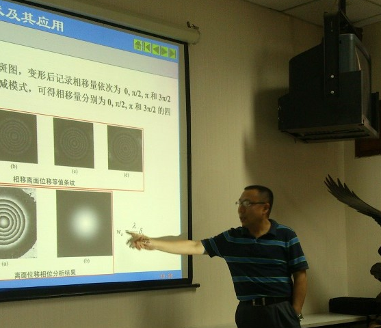 下午,王开福教授带来了题为“数字散斑干涉技术及其应用”的报告。王教授详细、深入的介绍了散斑干涉方法,主要包括:激光散斑现象、散斑计量原理、时间位移干涉、包裹相位展开、数字散斑降噪与干涉等内容。在报告最后,王教授对比分析了电测力学与光测力学的优缺点,用飞机探伤等具体事例说明散斑干涉技术的发展前景。